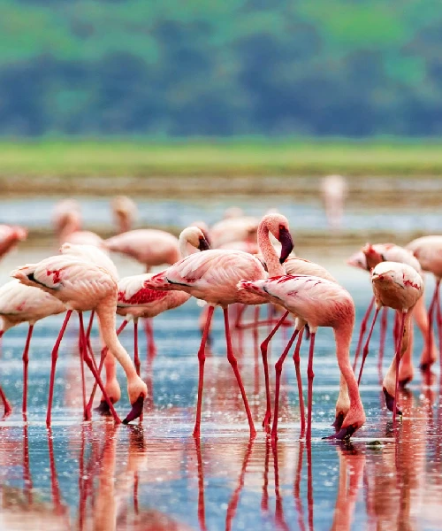 - After lunch proceed for an afternoon game drive. “Besides the flamingos that the lake is famous for, there are approx. 400 other species of birds visiting the lake. Also, many species of game can be found in the park including the introduced Rothschild’s giraffe, black and white rhino, waterbuck, reedbuck, lion, buffalo, leopard, baboon and many species of plains”