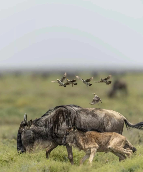- In the early months of the year – with a peak in February – the wildebeest herds are calving on the verdant grassy plains: thousands upon thousands of baby animals are born every day, attracting the attention of cheetah, lion and hyena.